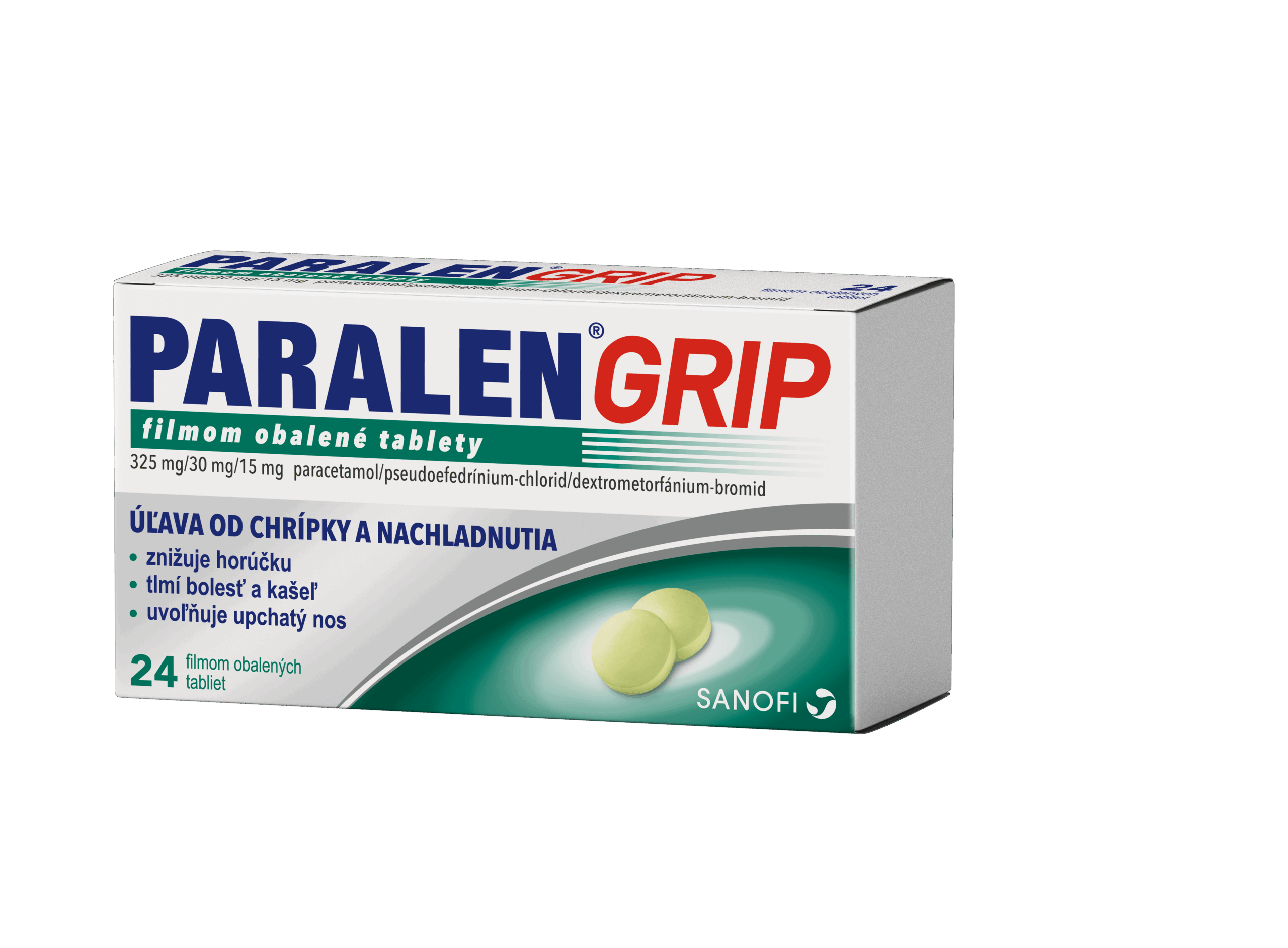 Kombinovaný liek s obsahom liečiv, ktoré tlmia bolesť, znižujú teplotu, odstraňujú zdurenie nosovej sliznice a potláčajú kašeľ.