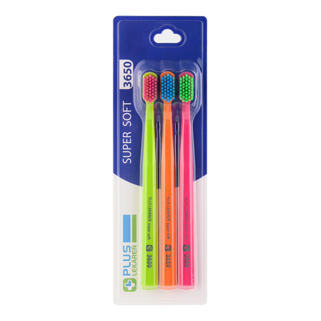 Super mäkká zubná kefka pre precízne čistenie zubov šetrné aj k citlivým ďasnám v blistrovom balení po 3 kusy.