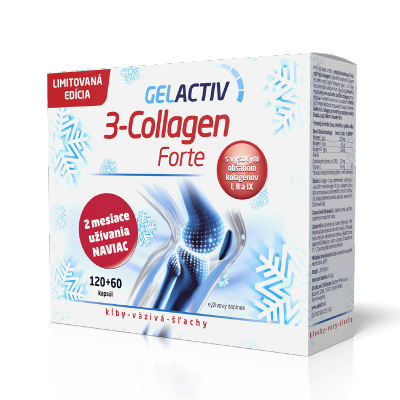 Doprajte svojmu pohybovému aparátu úľavu už od prvých známok ťažkostí kĺbov či kostí a dodajte mu kolagén 3 typov. Až vyskúšate doplnok výživy GelActiv 3-Collagen Forte, pochopíte význam a účinky tejto širokej skupiny proteínov potrebných pre kĺby, väzy a šľachy. Teraz v akciovom balení 60 + 60 kapsúl.