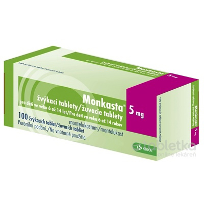 Monkasta 5 mg žuvacie tablety – tbl mnd (blis.OPA/Al/PVC/Al) 1×100 ksMonkasta 5 mg žuvacie tablety – tbl mnd (blis.OPA/Al/PVC/Al) 1×100 kstbl mnd (blis.OPA/Al/PVC/Al) 1x100 ks
